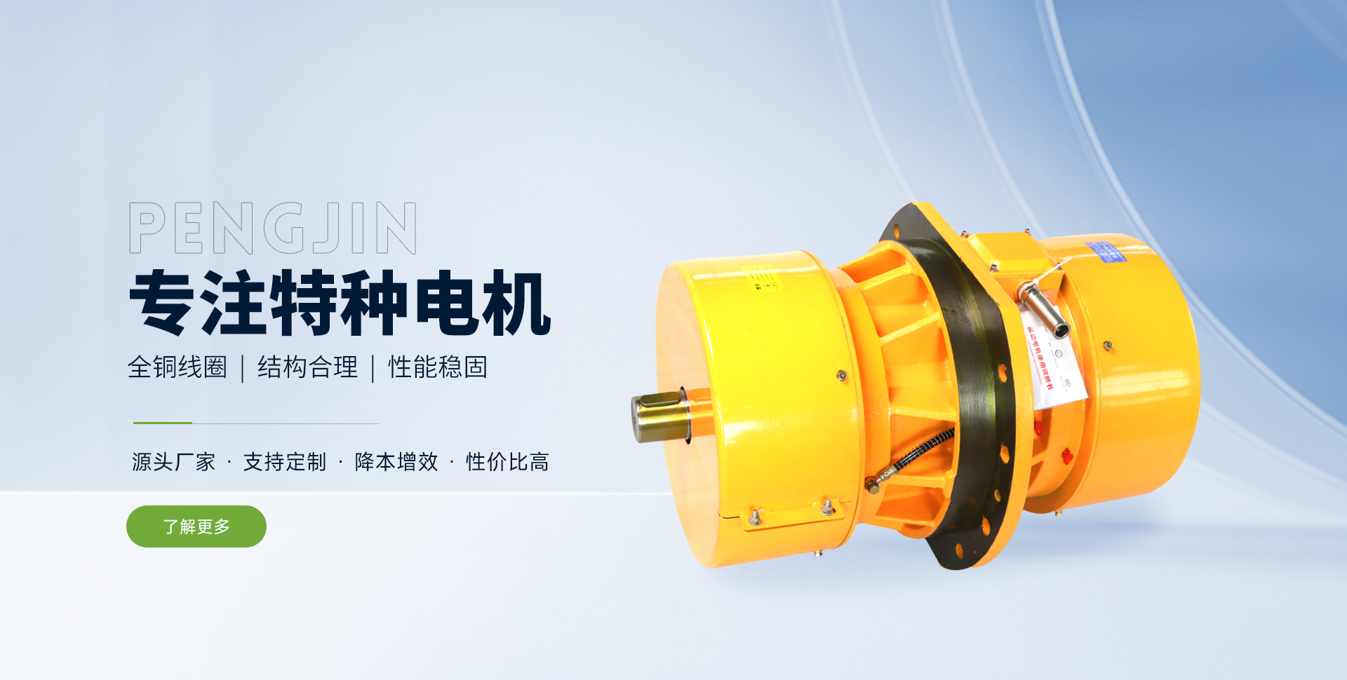 Company Profile新鄉(xiāng)市鵬錦特種電機(jī)有限公司是生產(chǎn)各類特種電機(jī)的制造商?! 」疚挥谥性貐^(qū)的河南省新鄉(xiāng)市關(guān)堤創(chuàng)業(yè)園區(qū)。緊鄰107國道,距京珠高速公路新鄉(xiāng)站僅3公里,交通極為便利。公司在工業(yè)園區(qū)內(nèi)的標(biāo)準(zhǔn)化廠房建有規(guī)范的電機(jī)制造、組裝、檢測生產(chǎn)流水線。同時(shí)配備了軸承裝配,數(shù)控繞線,真空絕緣處理,轉(zhuǎn)子動(dòng)平衡調(diào)試,數(shù)控車床,電機(jī)出廠試驗(yàn)微機(jī)處理系統(tǒng)等的工藝裝備和制造檢測設(shè)備。目前公司生產(chǎn)的所有產(chǎn)品絕緣等級均為F級以上,提升了產(chǎn)品品質(zhì),有力貫徹了“在持續(xù)的質(zhì)量保證體系下,始終提供客戶滿意的產(chǎn)品和服務(wù)”的公司產(chǎn)品服務(wù)方針。公司產(chǎn)品質(zhì)量穩(wěn)定,歷年通過,行業(yè)、省市技術(shù)監(jiān)督局的產(chǎn)品質(zhì)量檢測。 公司秉承“科技求先,產(chǎn)品求實(shí),管理求真,服務(wù)求誠”的經(jīng)營理念,努力打造支意識靠前,技能高的高素質(zhì)團(tuán)隊(duì);長期與國內(nèi)行業(yè)科研所和部分院校保持良好的合作關(guān)系,了解掌握行業(yè)動(dòng)態(tài);在技術(shù)研究方面投入大量資金,堅(jiān)持不地研制、引進(jìn)國內(nèi)外各類先進(jìn)適用的新型產(chǎn)品和制作工藝;針對各行業(yè)客戶的具體要求,量身設(shè)計(jì),制造出工況適用,性能穩(wěn)定的專用電機(jī)。 我們的產(chǎn)品廣泛應(yīng)用于動(dòng)力、控制、冶金、起重、鑄造、造紙、煤炭、醫(yī)藥、食品、礦山、線纜、印刷、包裝、環(huán)保工程及新能源等各領(lǐng)域的不同工業(yè)機(jī)械中,受到了客戶的認(rèn)可和好評。